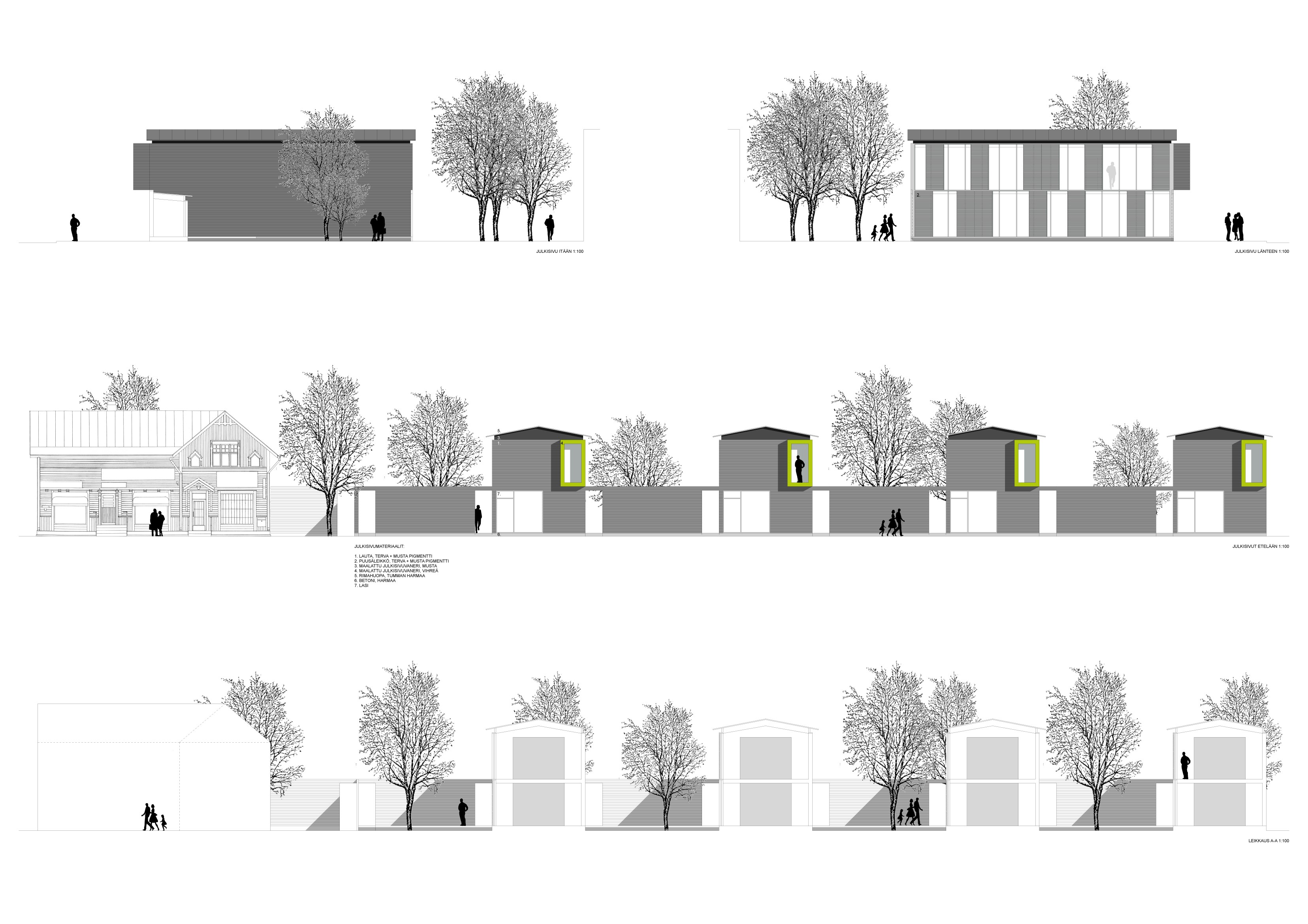 Juhana Marttinen Architects / Projects / Attached houses for Forssa / Facades and section / Large / Press
